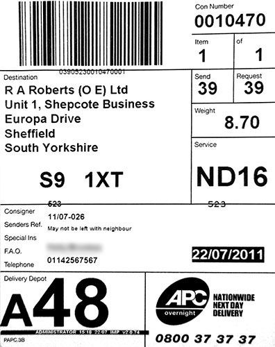 - carriage is normally next day U.K. mainland excluding some Scottish addresses;